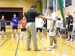 | 日時:平成20年8月24日(日) 場所:陵ヶ岡小学校 体育館 〜コメント〜 ヨネックスの平野耕作さんをお招きして、講習会を行いました。 最初はビーウェイの山本社長から、構え方やグリップの握り方を指導して頂きました。軸の作り方やグリップの握りで肩の可動域が変わるなど、皆さん大変興味を持って聞いていらっしゃいました。 次にヨネックスの平野さんから、打点の確認を指導して頂きました。いつも皆さんが気づいていない点をいくつか教えて頂きました。最後に、より実践的な動きをしながらラリーを行いました。止まらず常にリズムを取りながら前後に動いたり、頭の切り替えをしなければいけなかったので、脳も体も活性されたのでないでしょうか。 2時間という短い時間でしたが、日頃味わえない事がたくさんあった講習会だったと思います。これからの練習に生かして頂ければと思います。(桃山店:小嶋) |