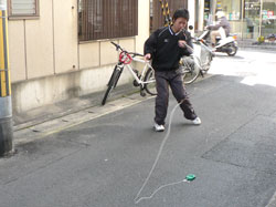 | 初心者の方やストロークに自信がない方に最適な商品、ずばりそれはアカエムトレーナーです!写真(↓)を見ての通りボールと重りがひもとゴムでつながっています。打っても打ってもボールは返ってくる仕組みになっています。これはボールに慣れる練習にもなりますし、ラケットの真に当てる練習にもなるのでストローク練習には最適です。強く打てば打つほど強く早くボールが返ってくるので道具に負けないようにどんどん打ち込んでみてはいかがですか?(太秦店:中村) | |