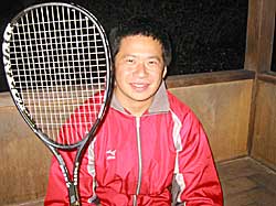 現在使用ラケット:MP6500 「RIMはシャフトが硬く感じられました。なので、ハードヒッターにはもってこいのラケットですよ、コレは!!」 |