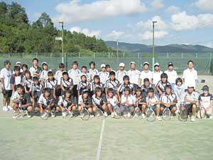 平成19年8月17日(金) 今年も峰山総合運動公園にて講習会が行われました。午前中は1本打ち、ボレー、サービスなどの基本練習を中心に、午後からは応用練習を行いました。これからの練習に役立てて頂けたらと思います。試合での活躍を楽しみにしています。また試合会場でお会いしましょう。暑い中本当にお疲れ様でした。(太秦店:中村)