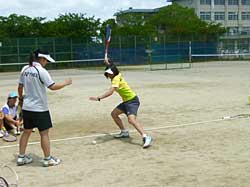 | 6月16日日曜日にヨネックス女子チームの中村朱里選手と神谷絵梨奈選手にお越し頂いて男山中学校にて講習会を行いました。 午前中はウォーミングアップと中村朱里選手からストロークの御指導がありました。中村朱里選手の美しいフォームからは学べる事がたくさんあり、中学生たちはしっかりと頭に焼き付けイメージトレーニングができたと思います。 午後からは神谷絵梨奈選手からボレーについての御指導がありました。ボレーの時の足の動かし方、基本ボレーから先はどんなボレーになるのかを実践して頂きました。 前日の雨が嘘のような猛暑になりましたがみんな最後まで頑張りました。中村選手と神谷選手に積極的にアドバイスを聞きに行く子もいました。教えて頂いたことを練習や試合に活かして欲しいと思います。 中村選手、神谷選手ありがとうございました。(BWAY桃山店:宮本) |